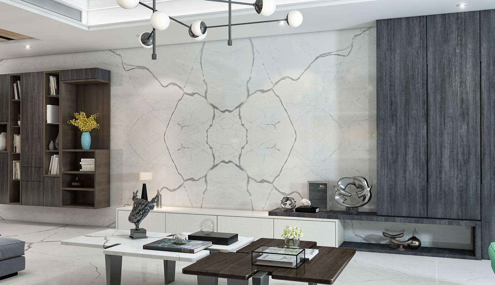 Feature Walls and Backsplashes: Statuario marble can be used to create dramatic feature walls and backsplashes that serve as the centerpiece of any design. Its bold veining patterns add visual interest and depth.
